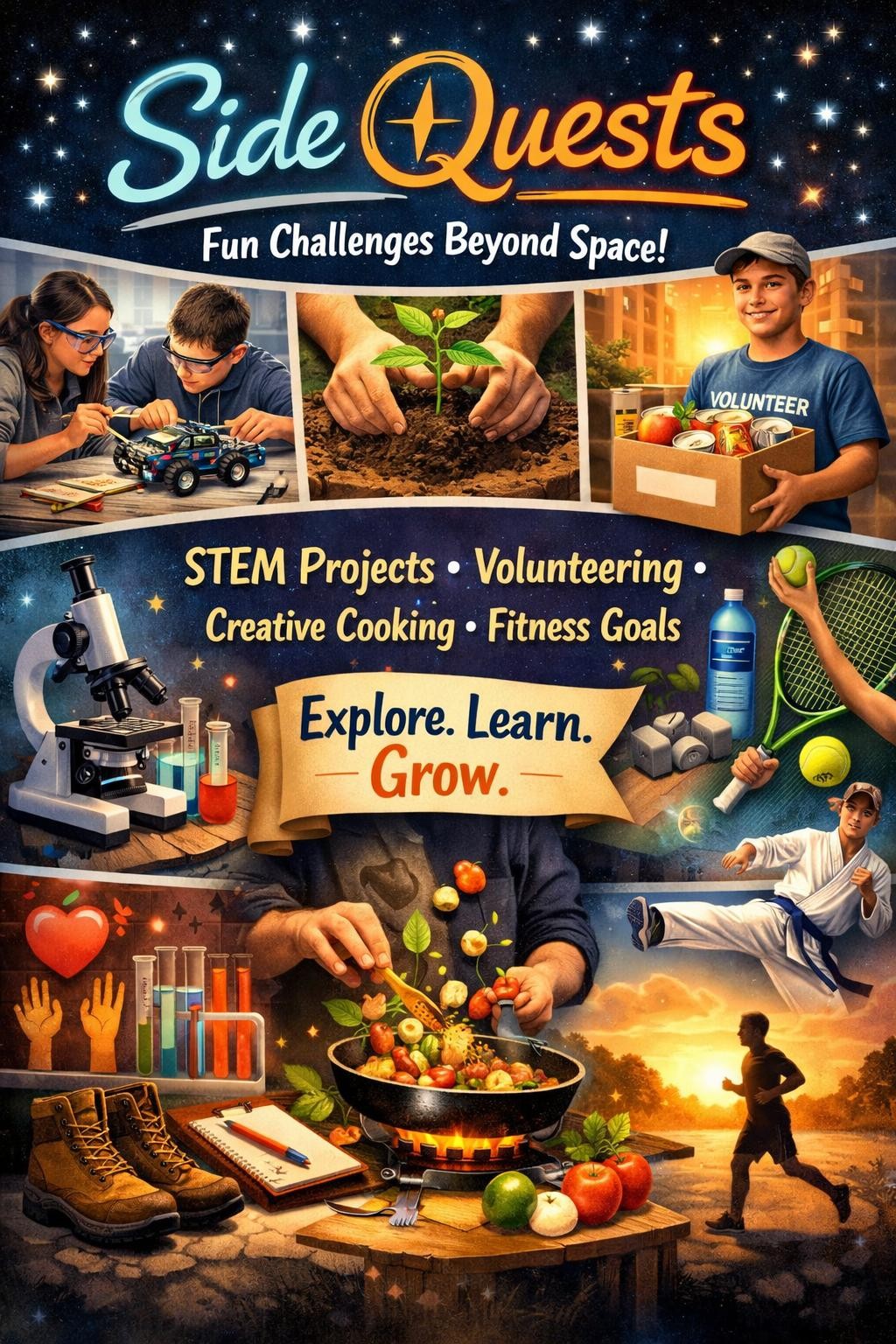 This section will highlight my passion in hands-on STEM activities through my student-led STEM group to volunteering initiatives in my community, creative cooking experiments, and personal fitness goals—all designed to spark curiosity, creativity, and personal growth.